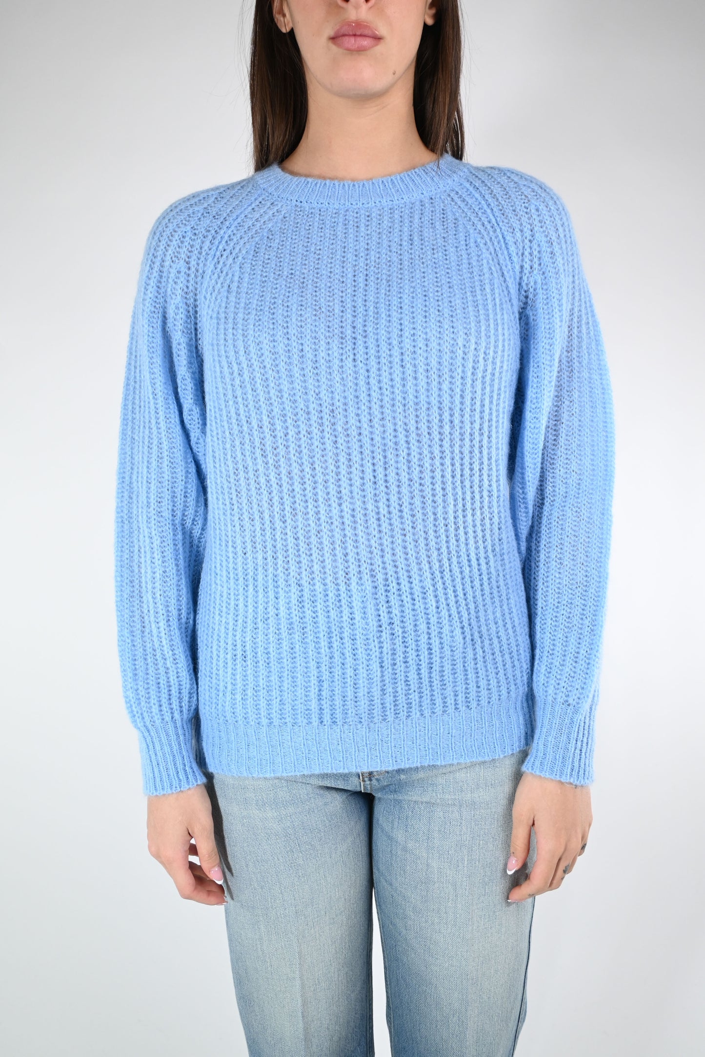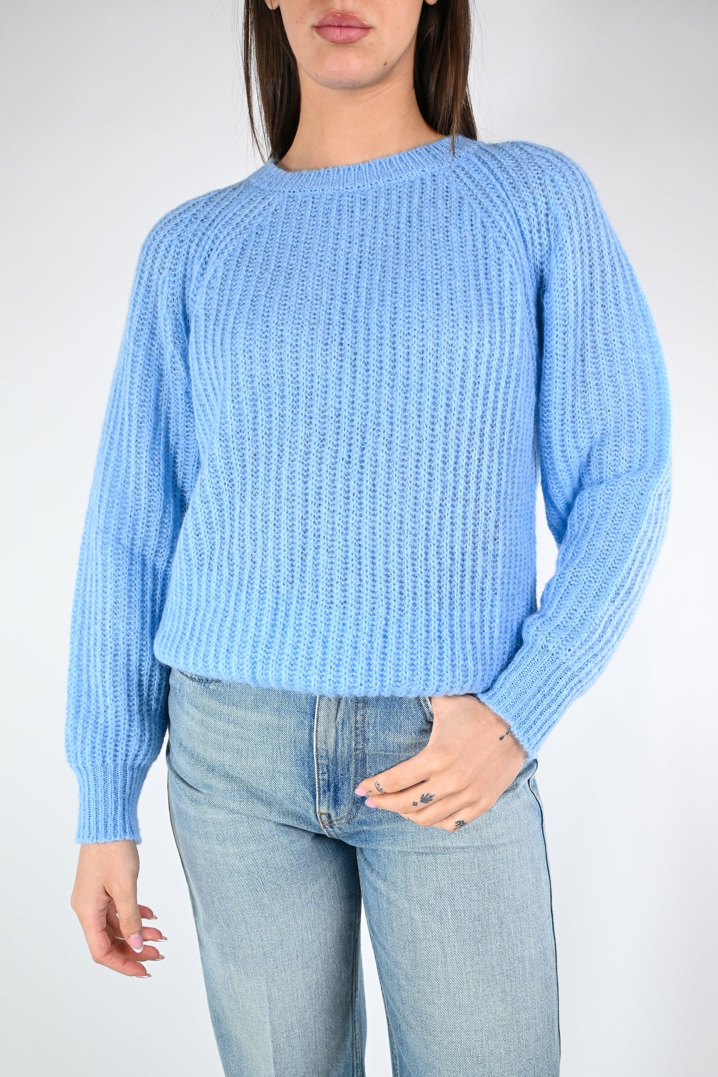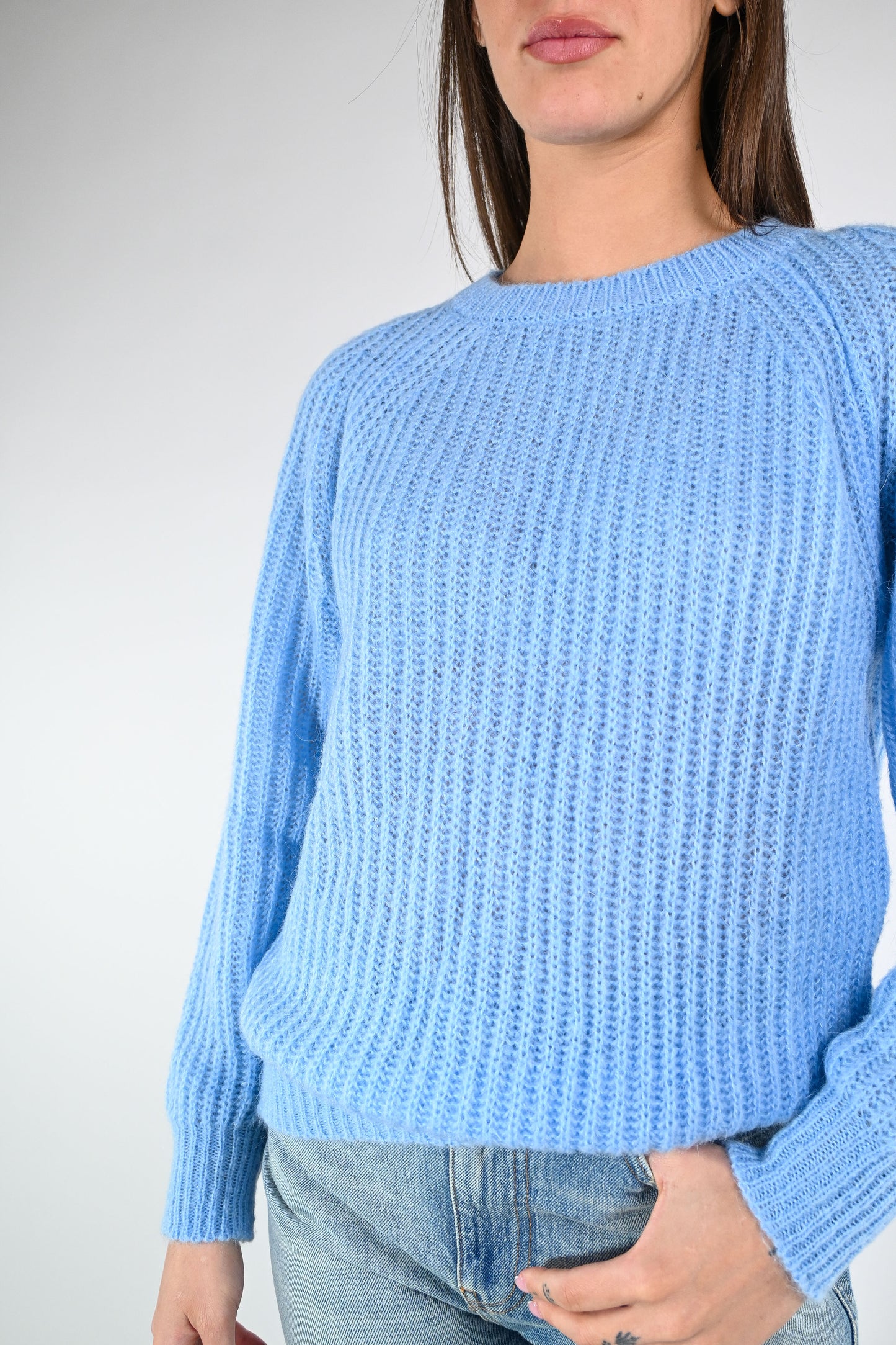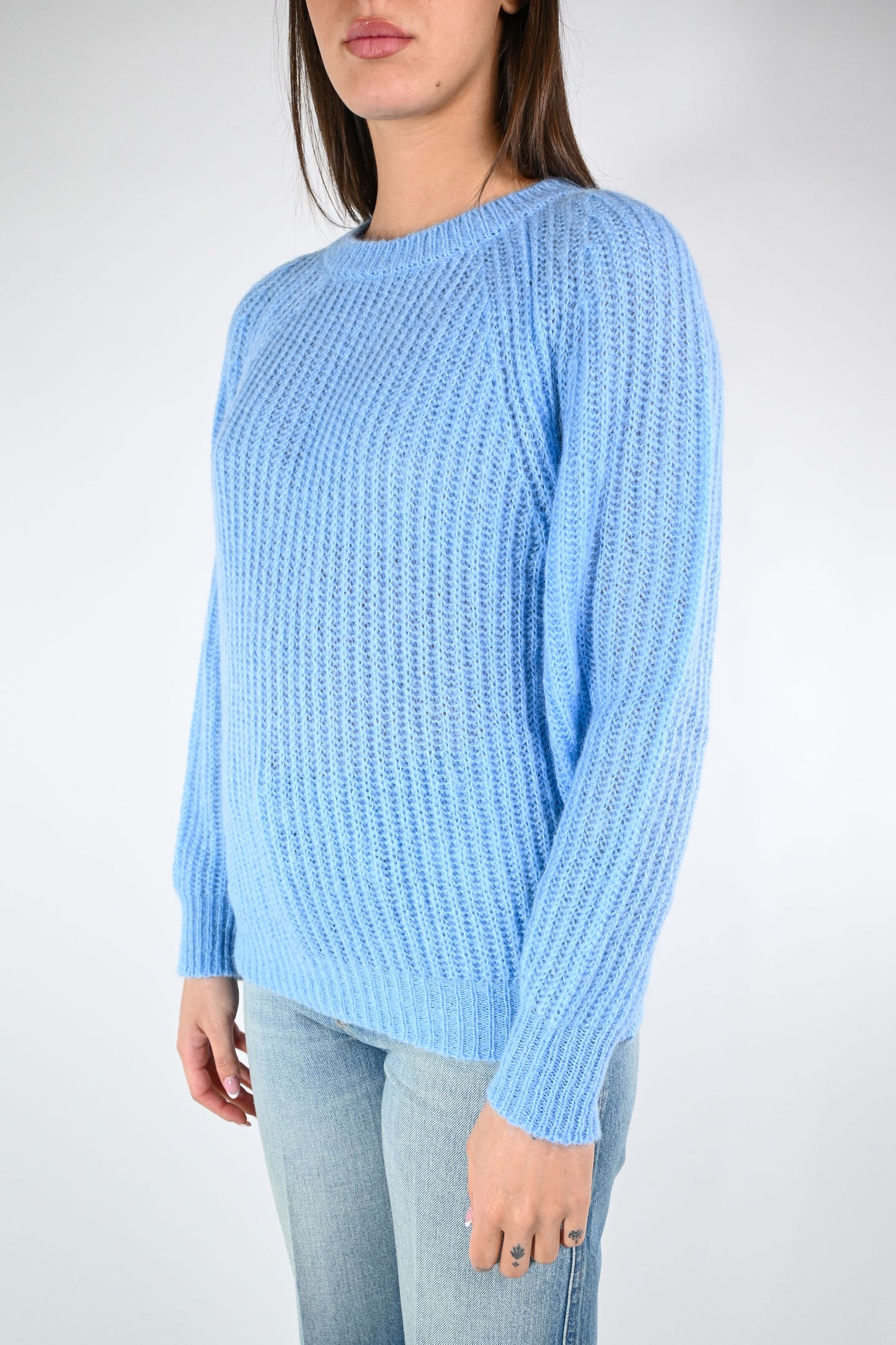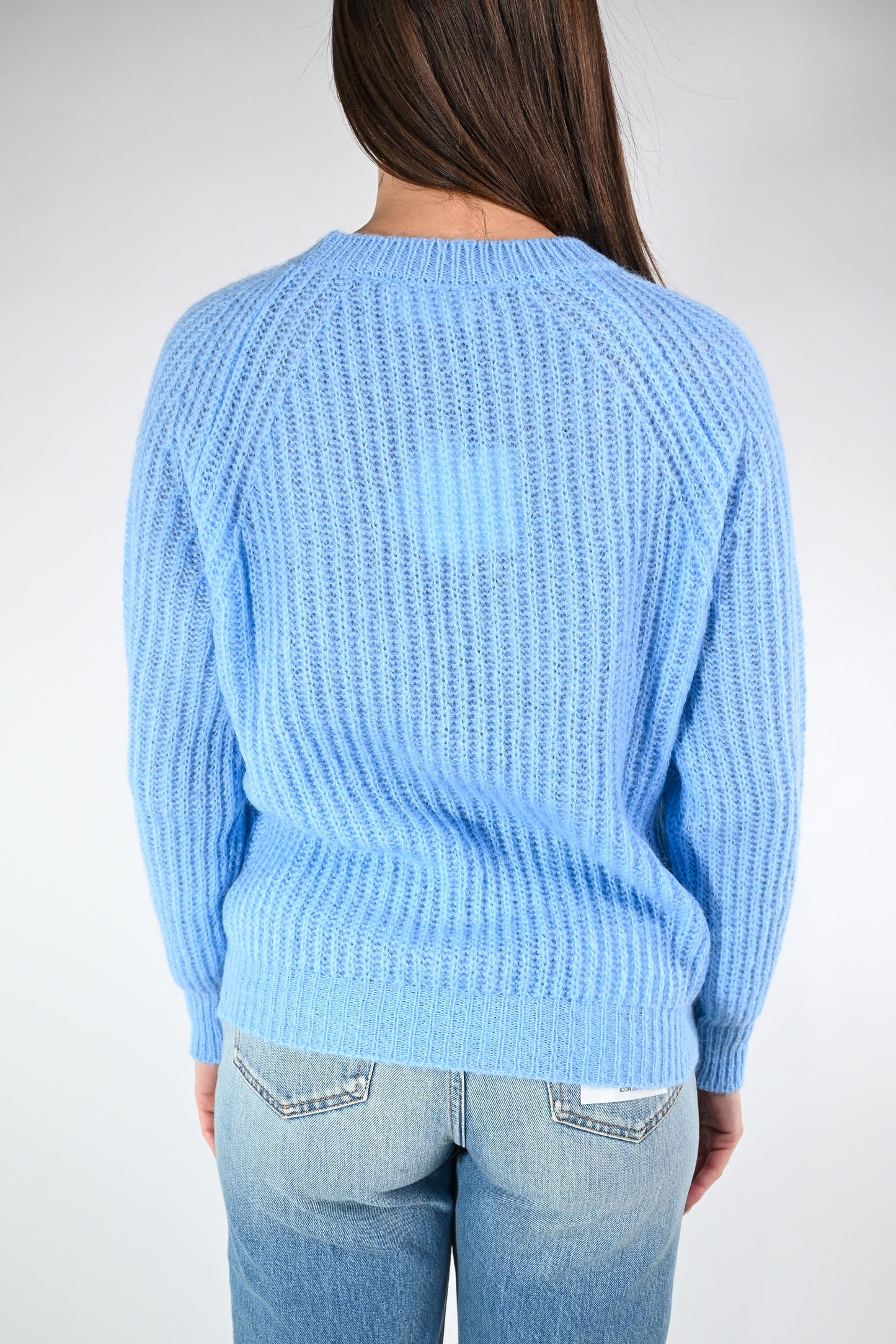 VICOLO - MAGLIA MOHAIR GIROCOLLO A COSTE ART.55086F - CELESTE