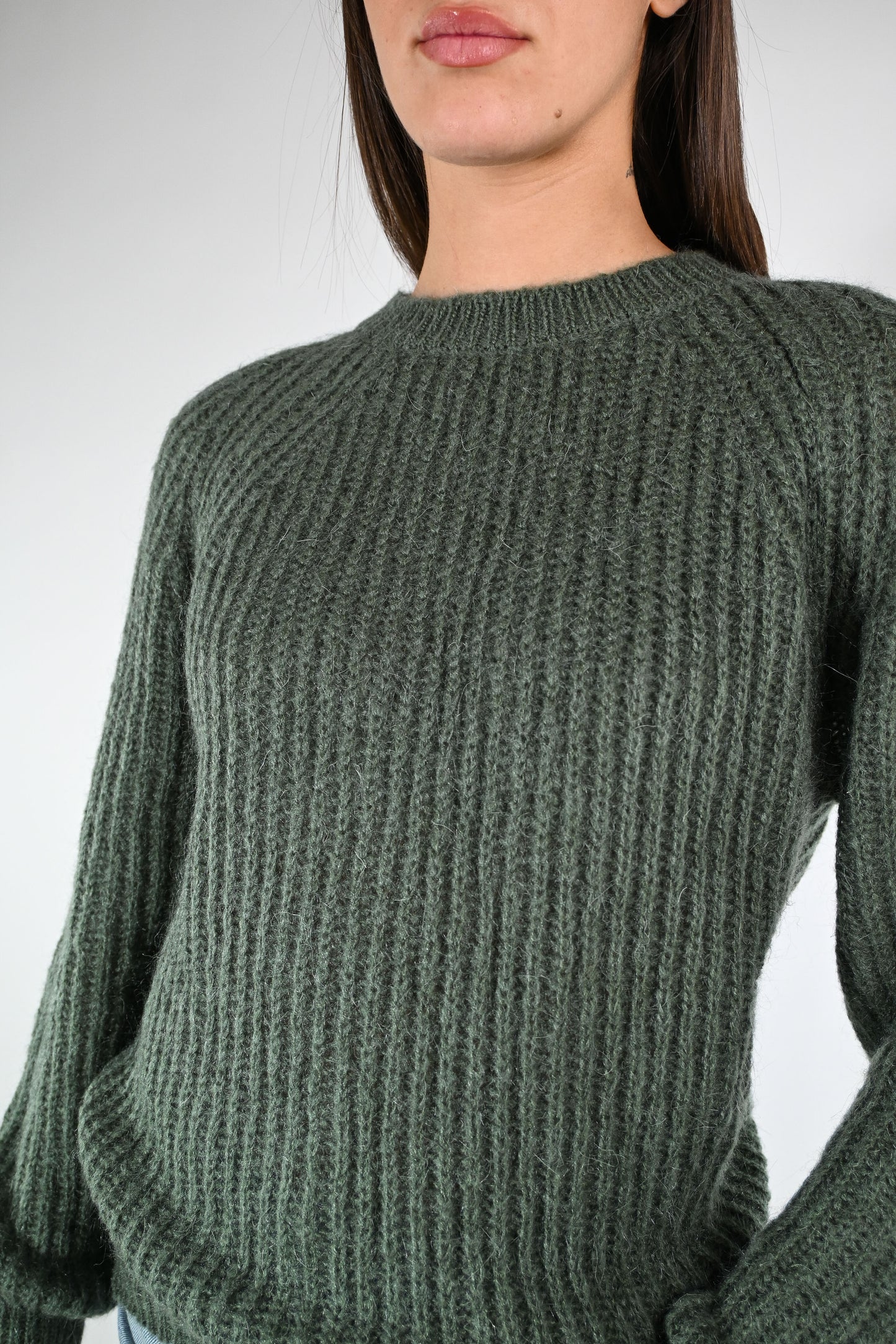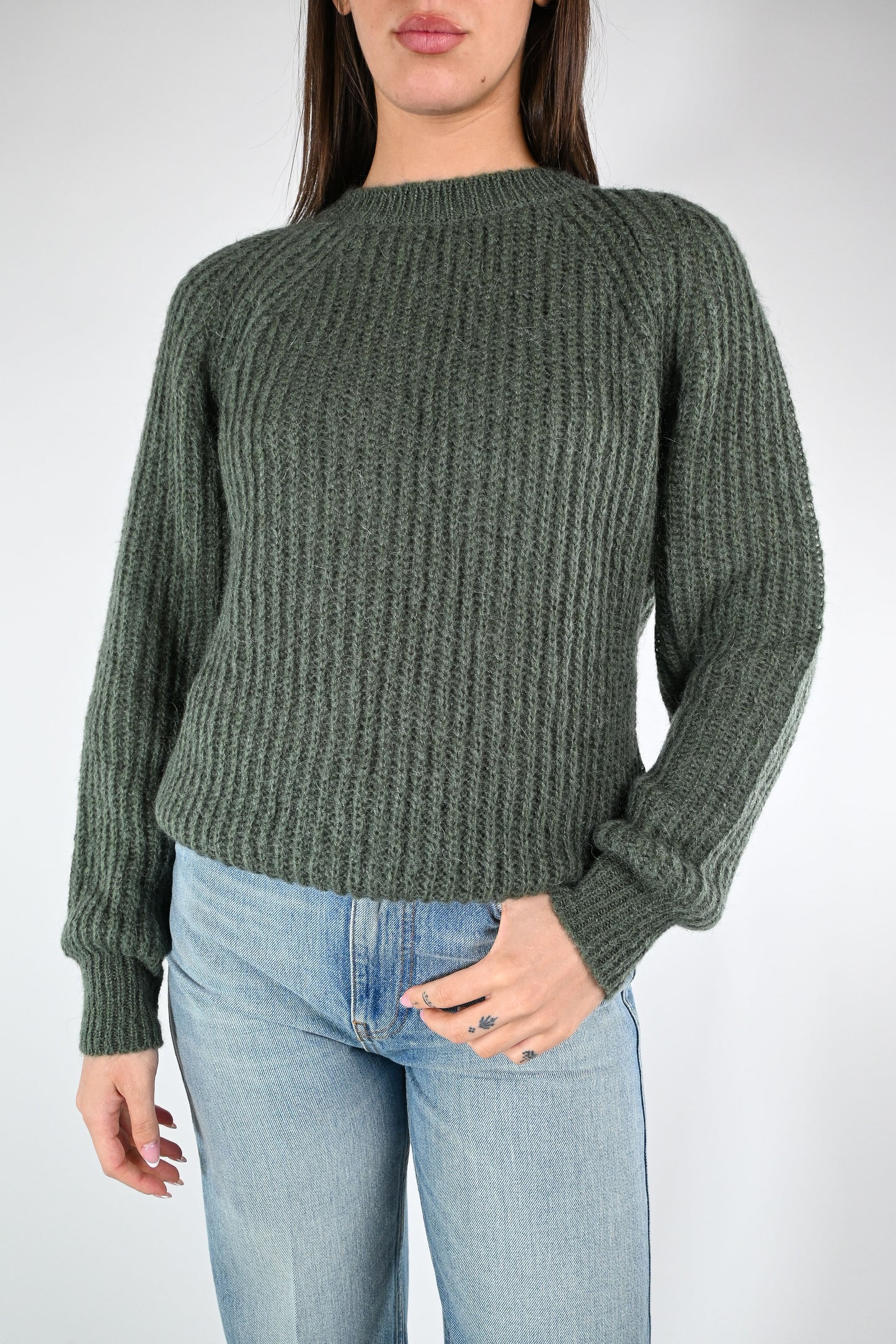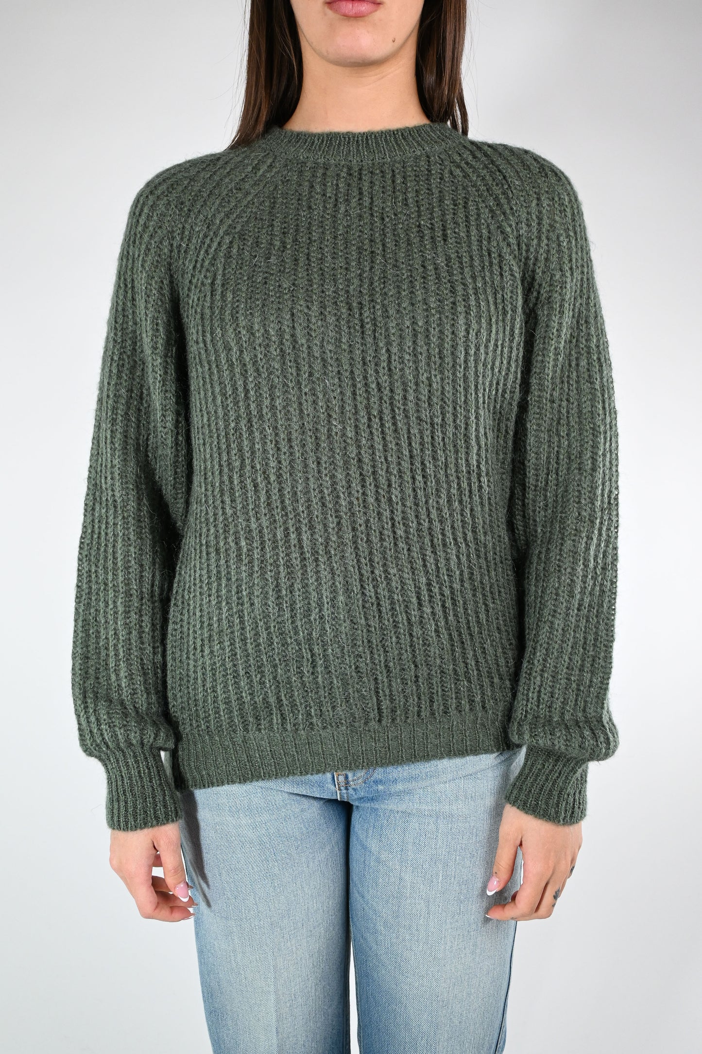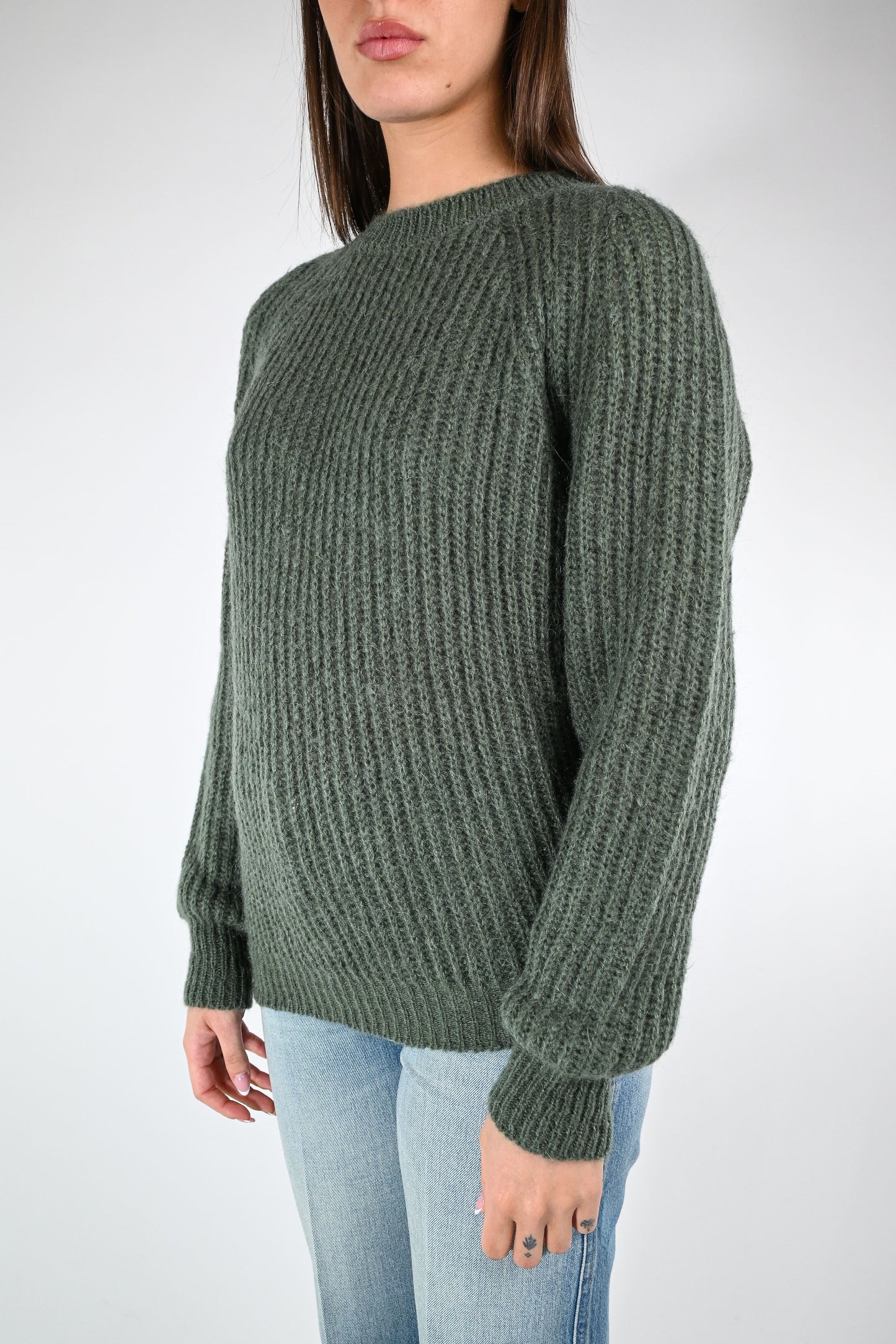 VICOLO - MAGLIA MOHAIR GIROCOLLO A COSTE ART.55086F - MILITARE