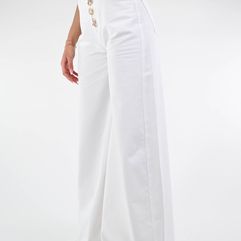 Prezzo normale €38,70Pantalone wide leg Yves, con bottoni gioiello, 4 tasche, colore panna