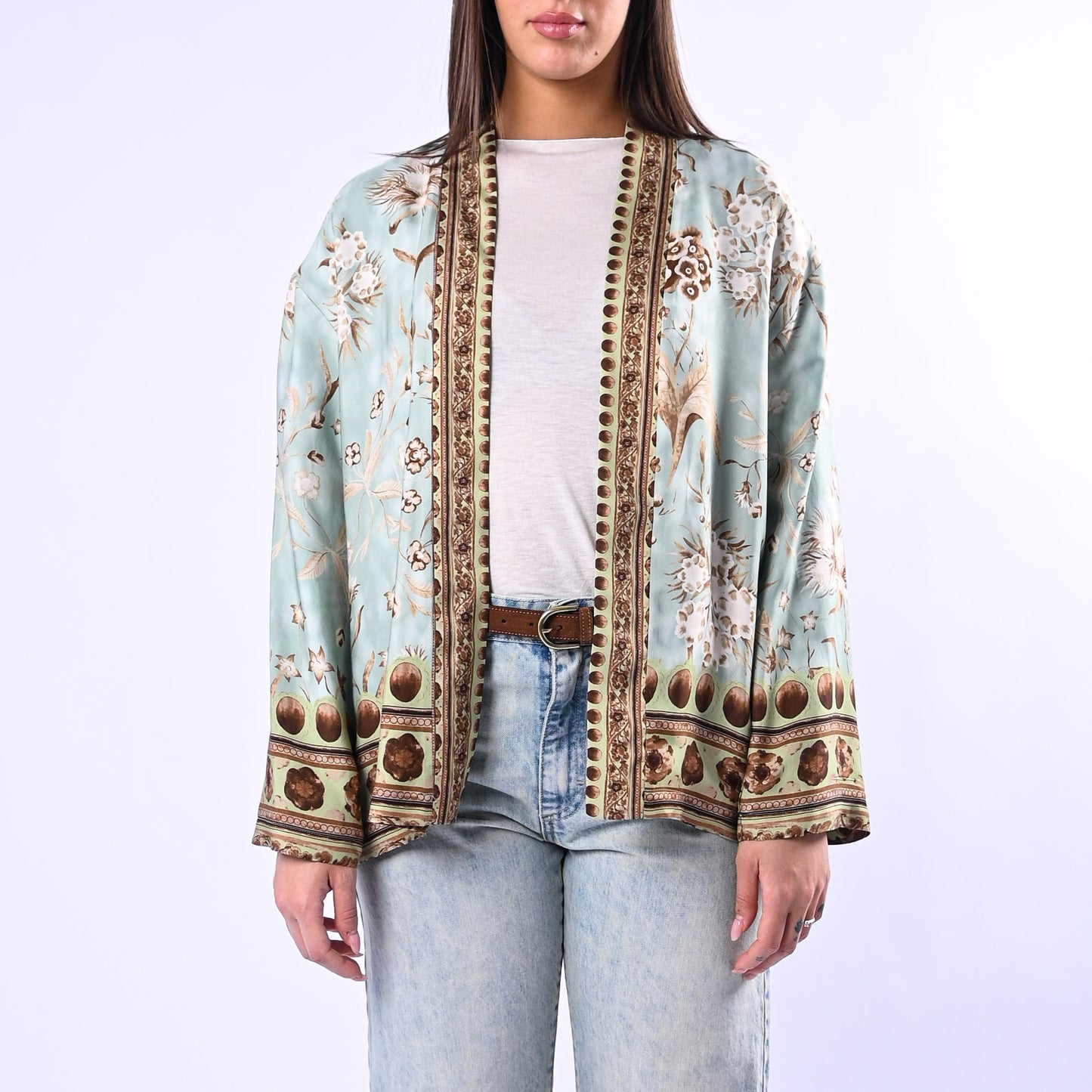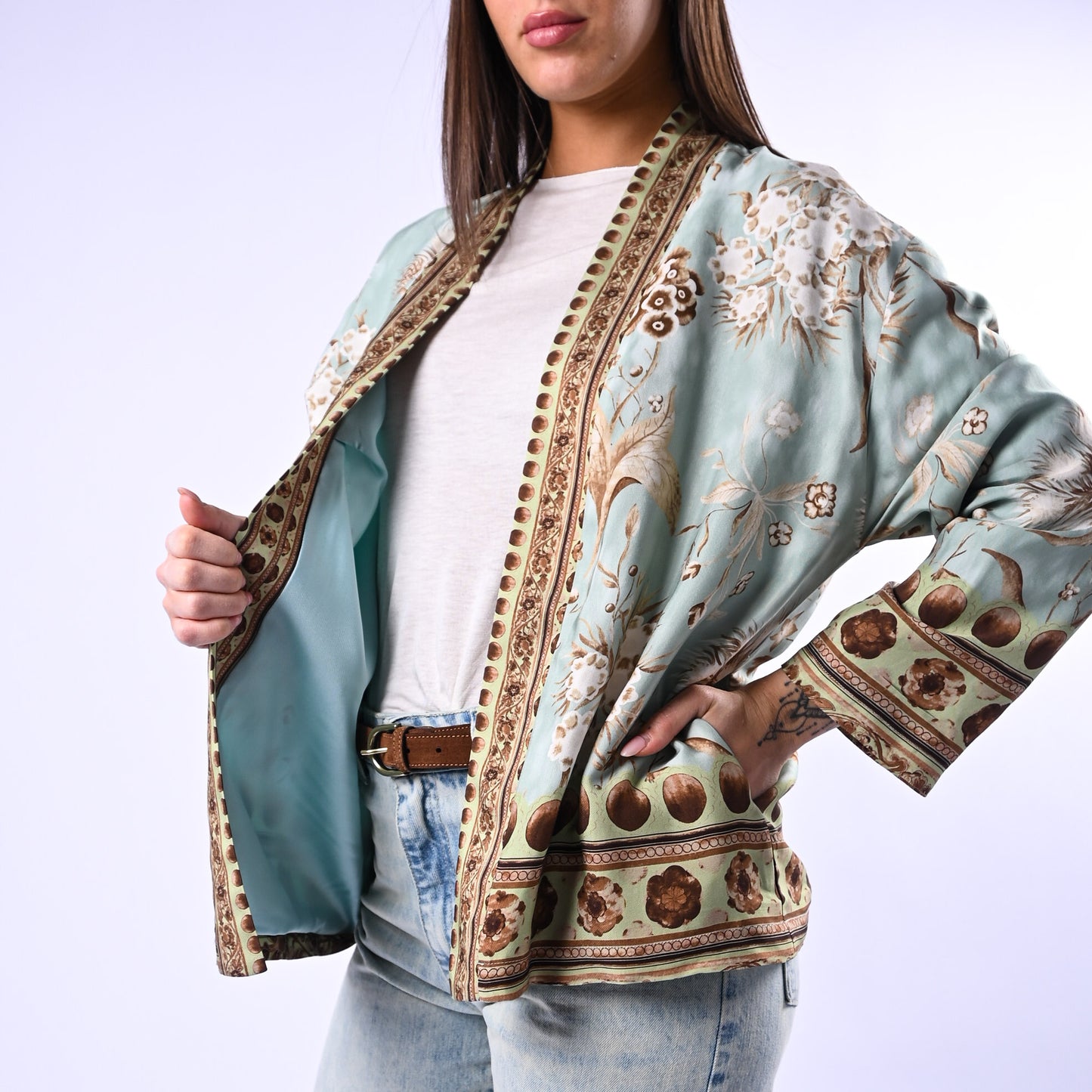 WU'SIDE - GIACCA/KIMONO FANTASIA FLOREALE ART.26296 - MENTA/BEIGE