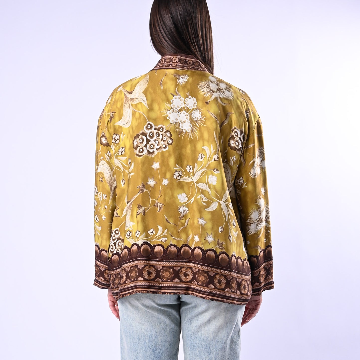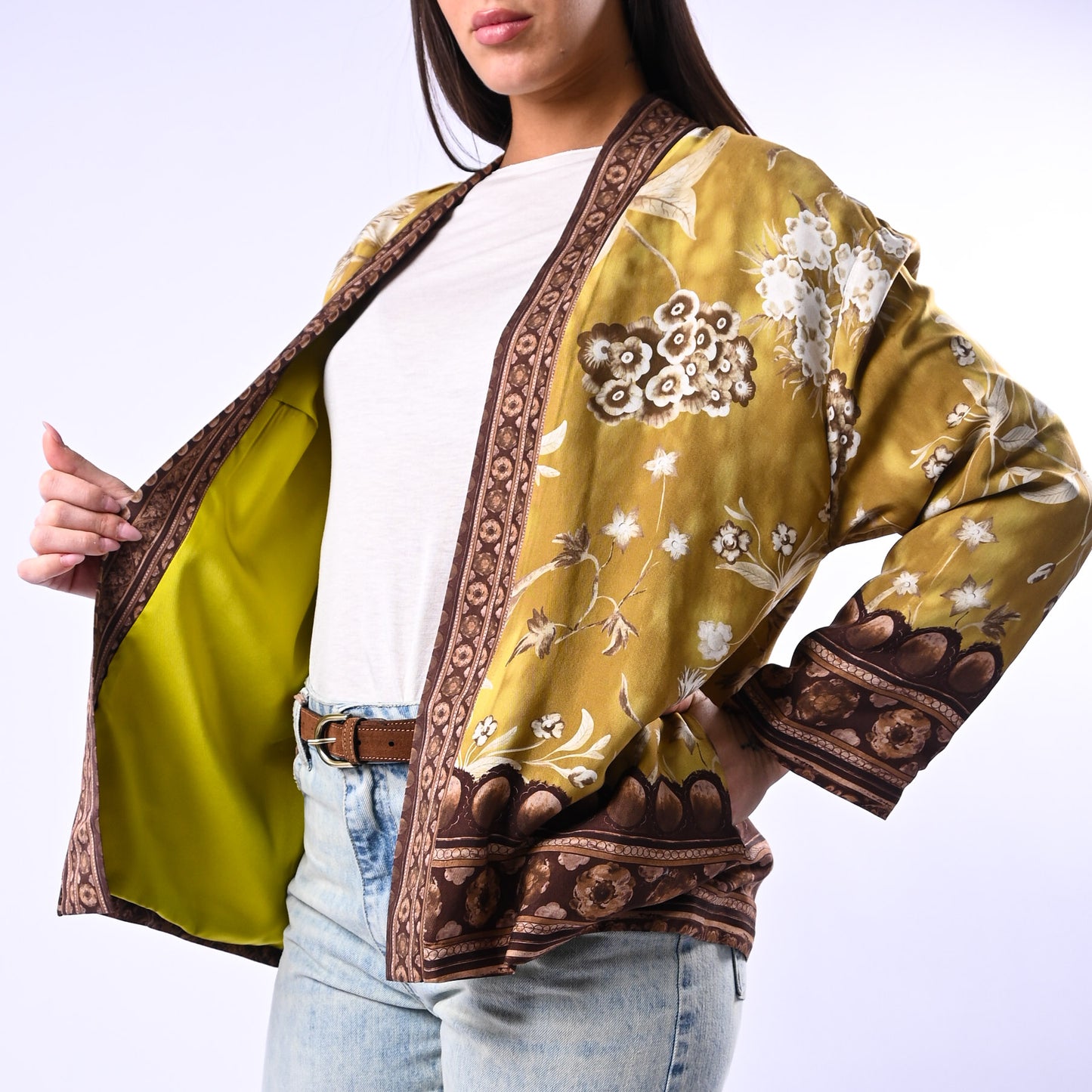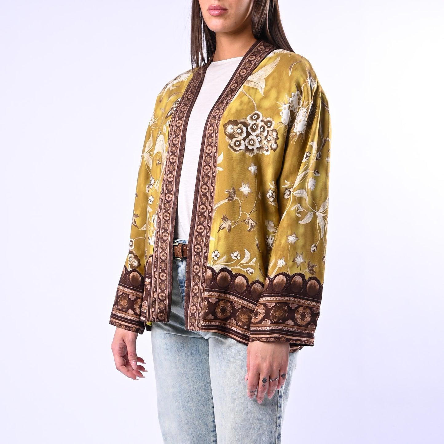 WU'SIDE - GIACCA/KIMONO FANTASIA FLOREALE ART.26296 - SENAPE/MORO